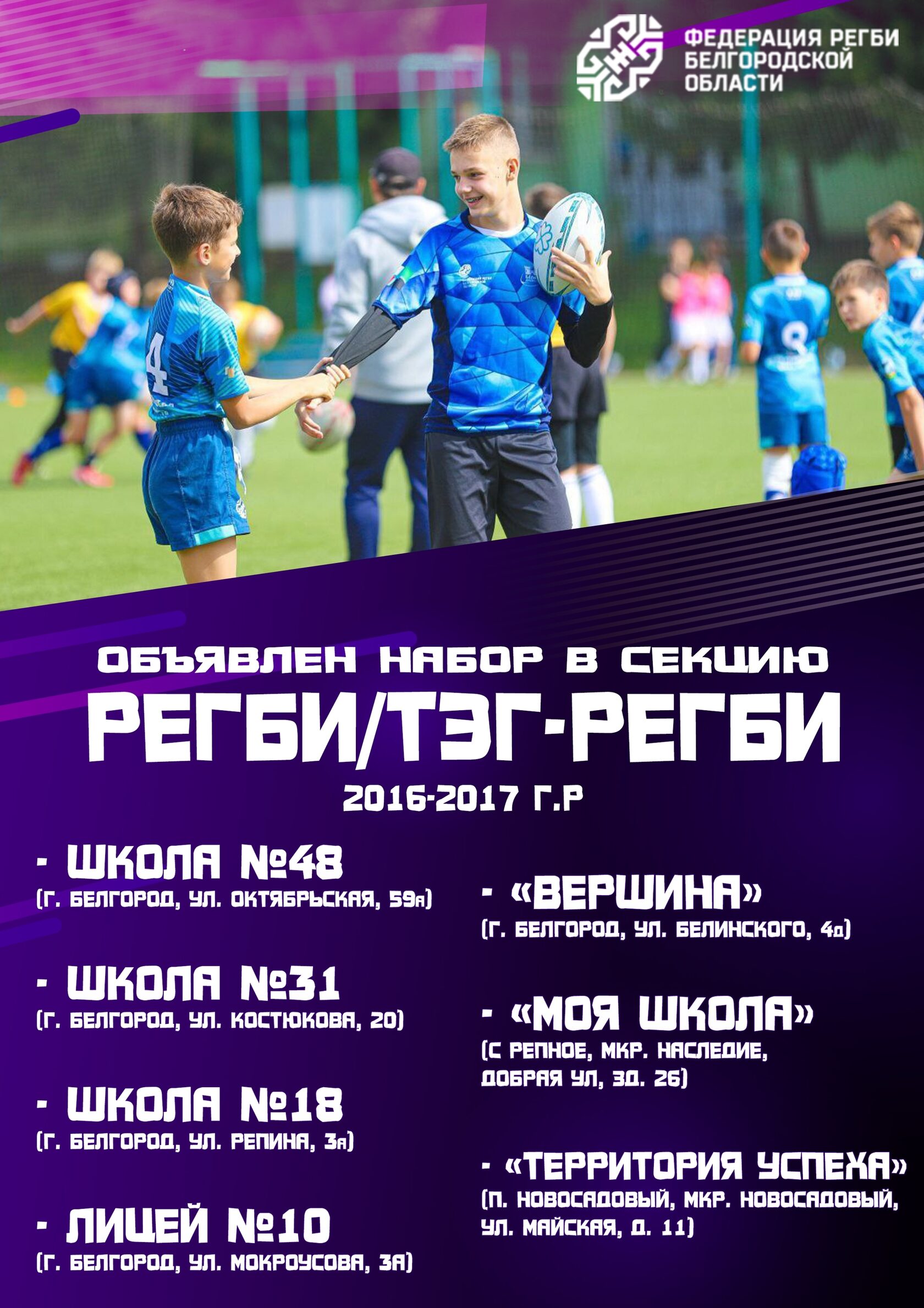 Объявлен набор в секцию регби/тэг-регби (2016-2017 г.р.)